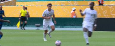 皇马后场打出反击,维尼修斯后场衔枚疾进,贡萨洛-加西亚将球交给巴尔韦德,罗德里戈送上精妙斜传,贡萨洛-加西亚的右脚射门打在左脚上,皮球偏转入网,皇马1-0领先!